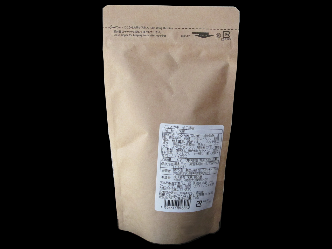 原材料名:うるち米(国内産)、植物油脂、食塩、香材辛料、砂糖、デキストリン、乾燥柚子、粉末醤油、鰹節エキス、ホタテ貝エキス、蛋白加水分解物、昆布エキス、ポークエキス/加工デンプン、調味料など